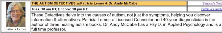 In this live training session, hosted by Patricia Spear Lemer, Dr. Elice will provide the foundation to approach diets, nutritional deficiencies and general guidelines for possible nutritional interventions for people diagnosed with Autism. Dr. Elice is a board certified pediatrician and is certified in Hyperbaric Medicine, and has treated Autistic Spectrum Disorders, mitochondrial, PANDAS, immune and metabolic dysregulation for the past 10 years.
